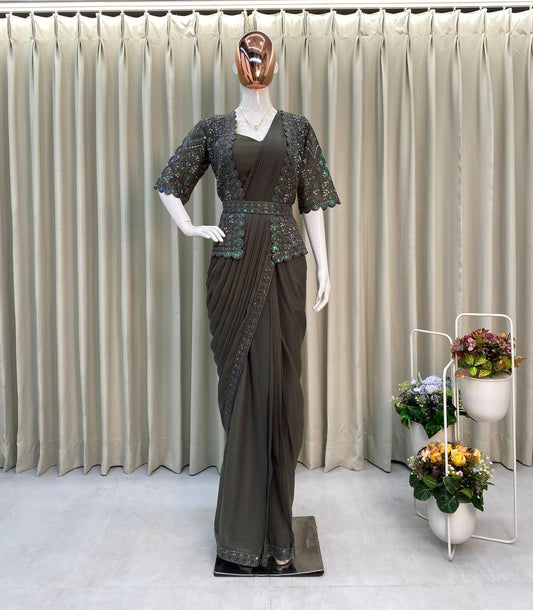 1 Min Ready To Wear Georgette Saree with Stitched Blouse
