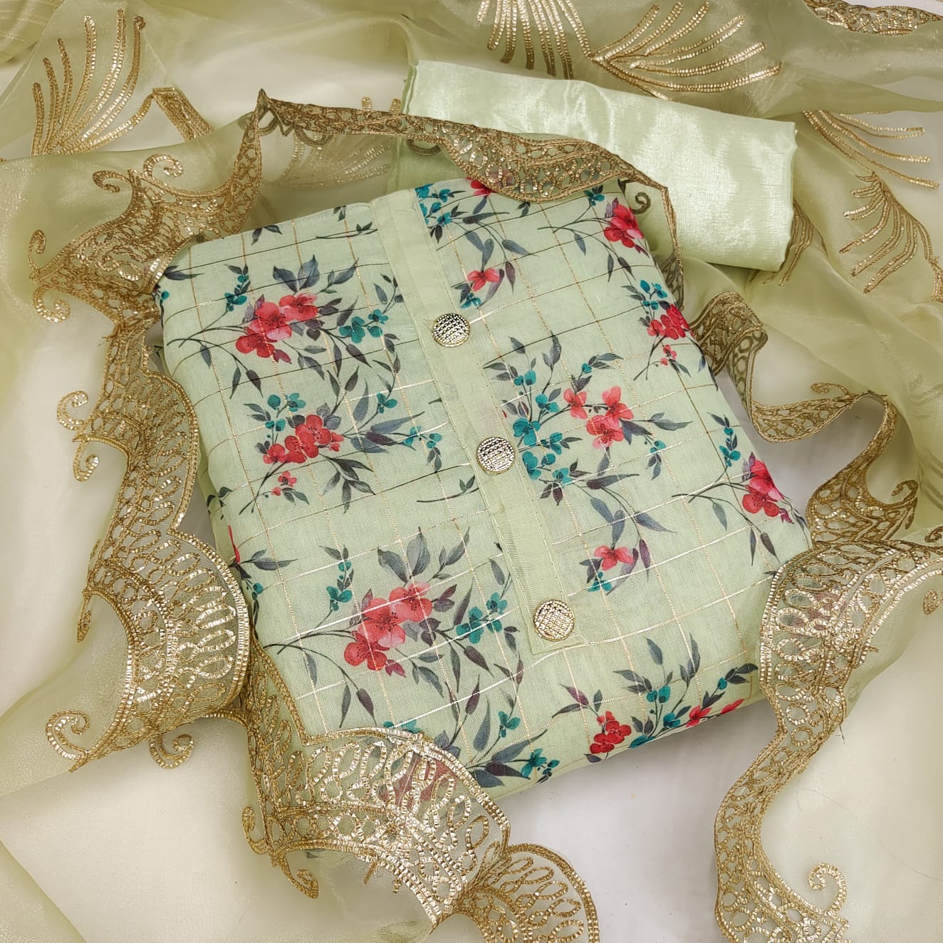 Attractive Sea Green Color Chanderi Printed Checks Design Salwar Suit