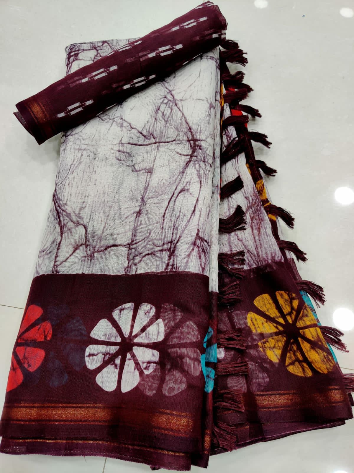 Awesome Maroon Color Cotton Weaving Printed Saree Blouse For Women