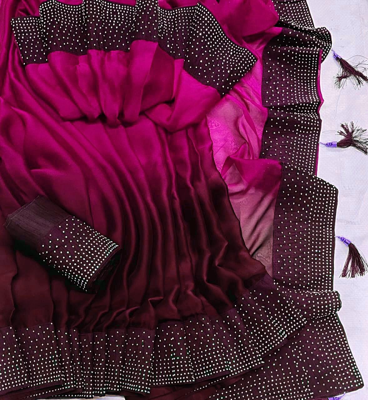 Party Wear Satin Silk Stone Work Saree Blouse For Women