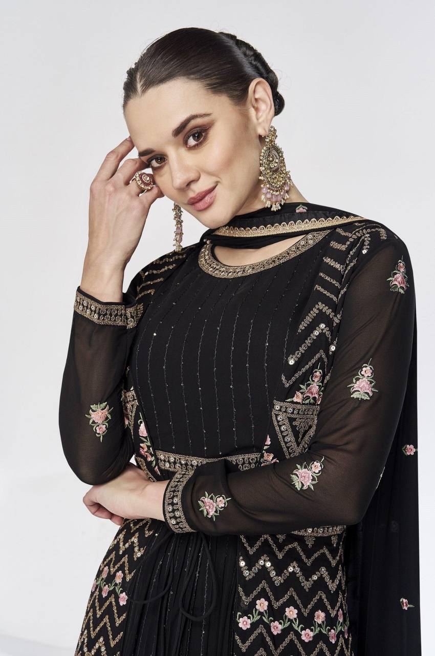 Black Color Georgette Jacket Style Stiched Suit