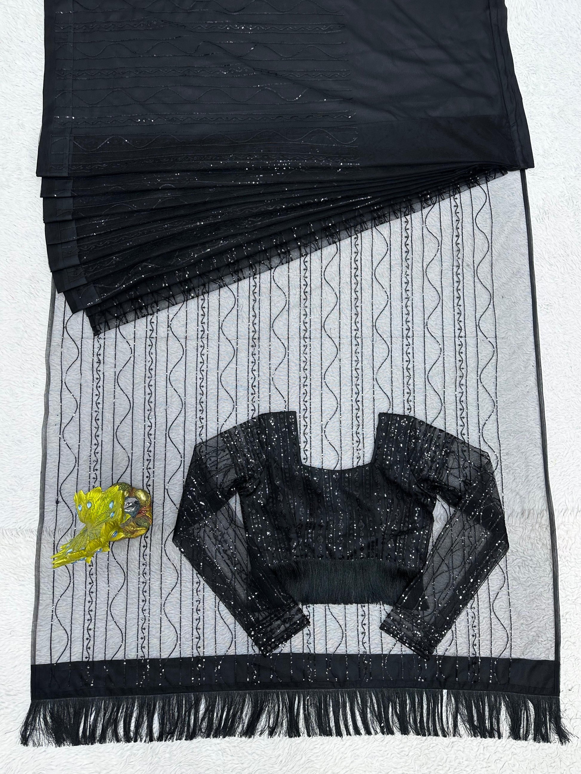 Black Sequence Work With Fancy Lace Ready To Wear Saree