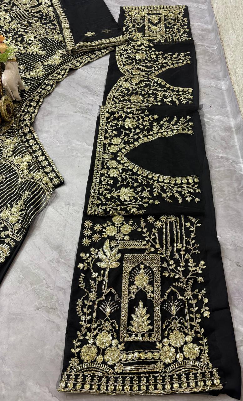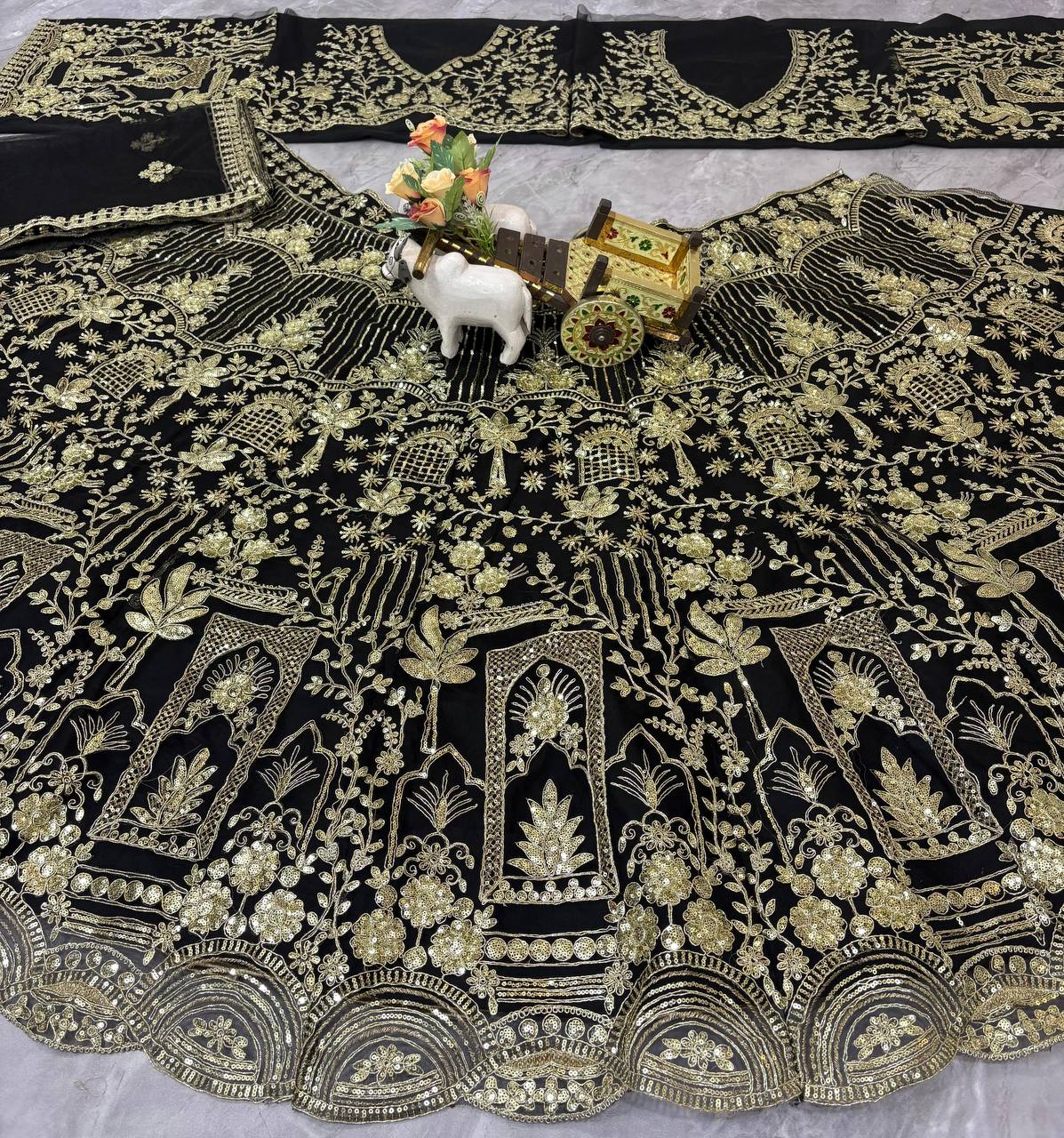 Black Soft Net Heavy Sequence Jari Work Lehenga Choli