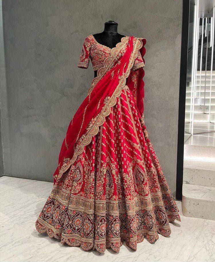 Bridal Wear Red Color Tapeta Silk Chine Stitched Work Design Lehenga Choli