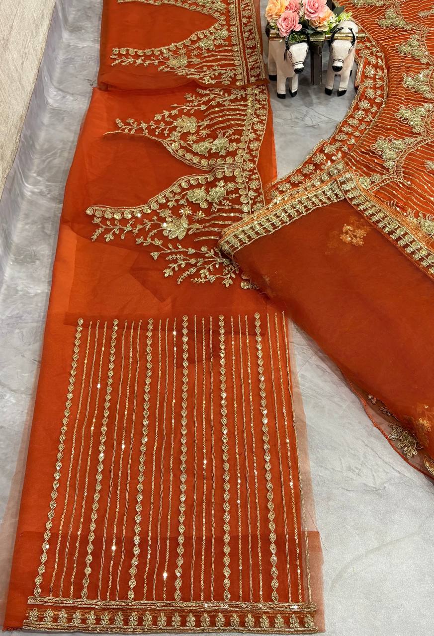 Burnt Orange Color Sequence Dori Embroidered Lehenga Choli