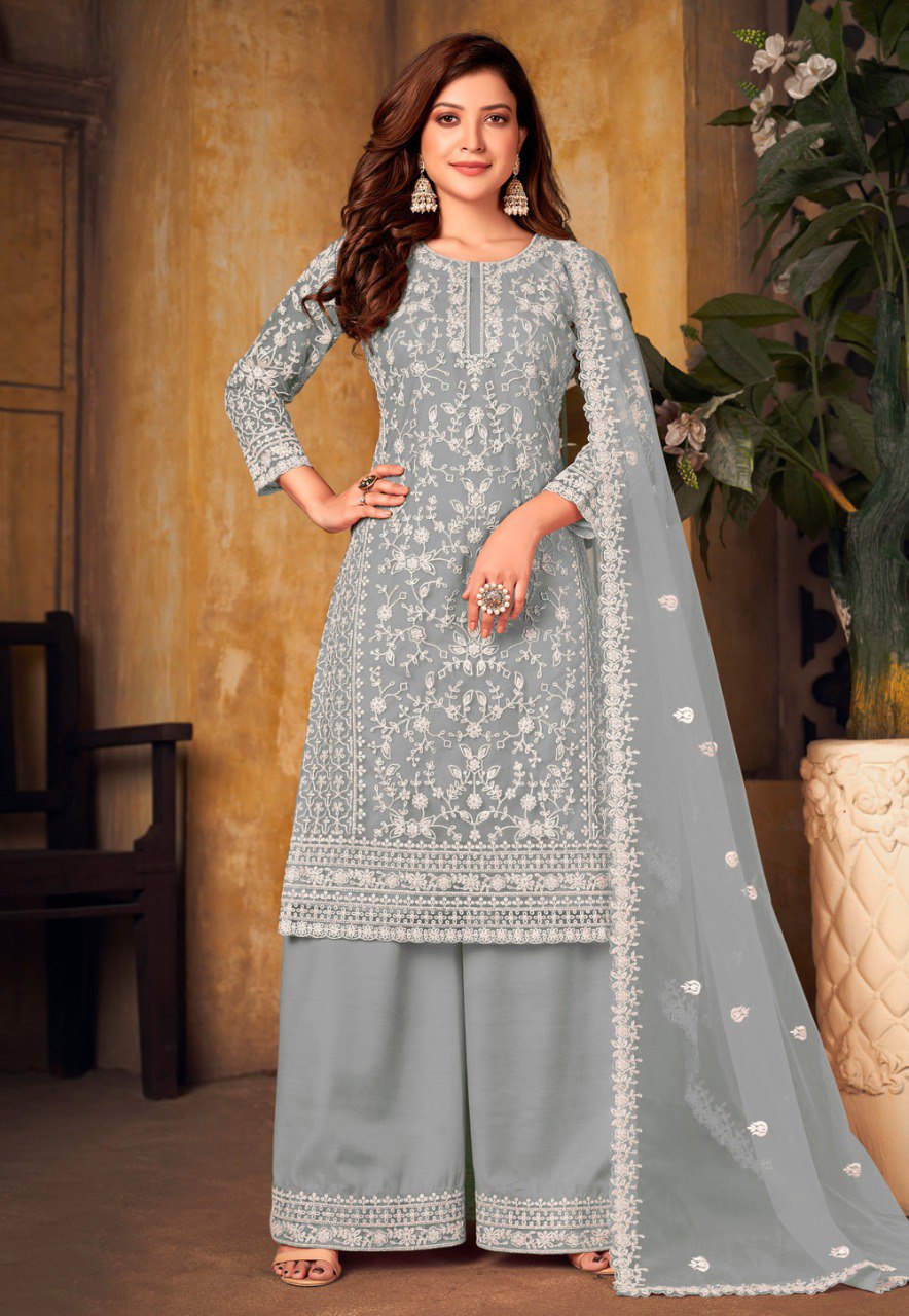 Butterfly Heavy Net With Codding Embroidery And Stone Work Dress Material For Women