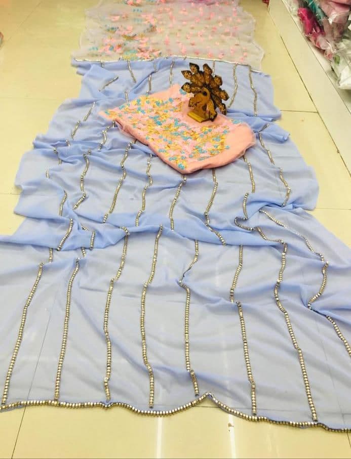 Charming Light Blue Color Indian Wear Georgette Sequence Work Saree Blouse