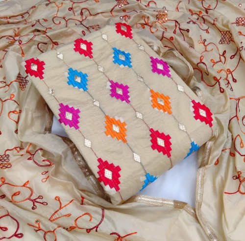 Cream Color Chanderi Pretty Sequence Work Salwar Suit For Ladies