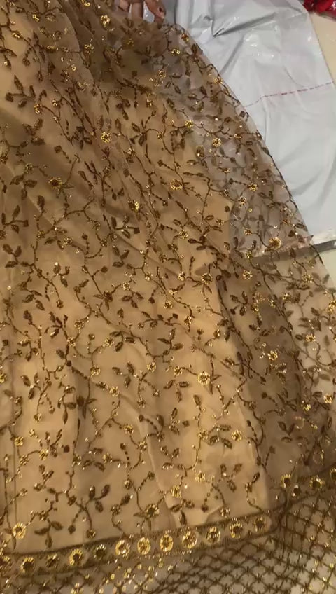 Glemorous Light Brown Colour Soft Net Sequence Worked Lehenga Choli