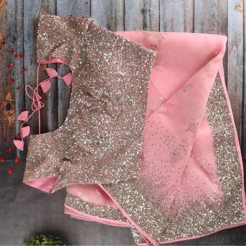 Graceful Pink Color Georgette Sequence Work Saree Blouse For Occasion Wear