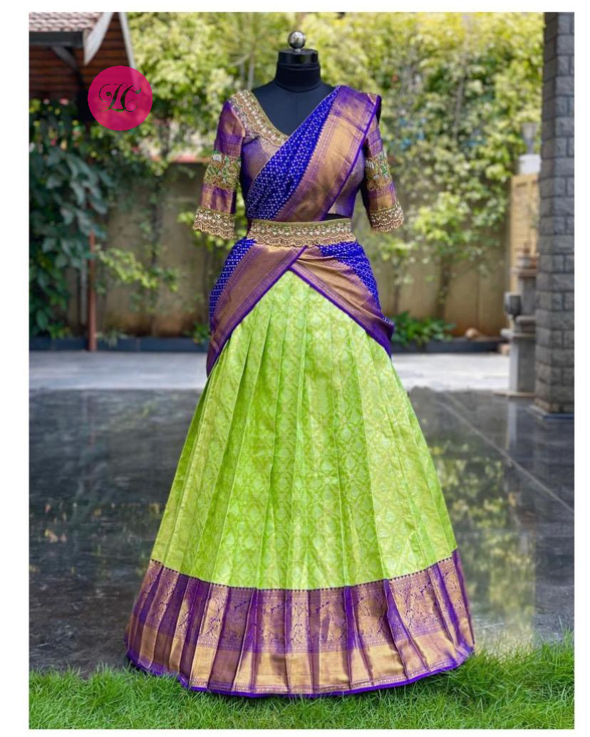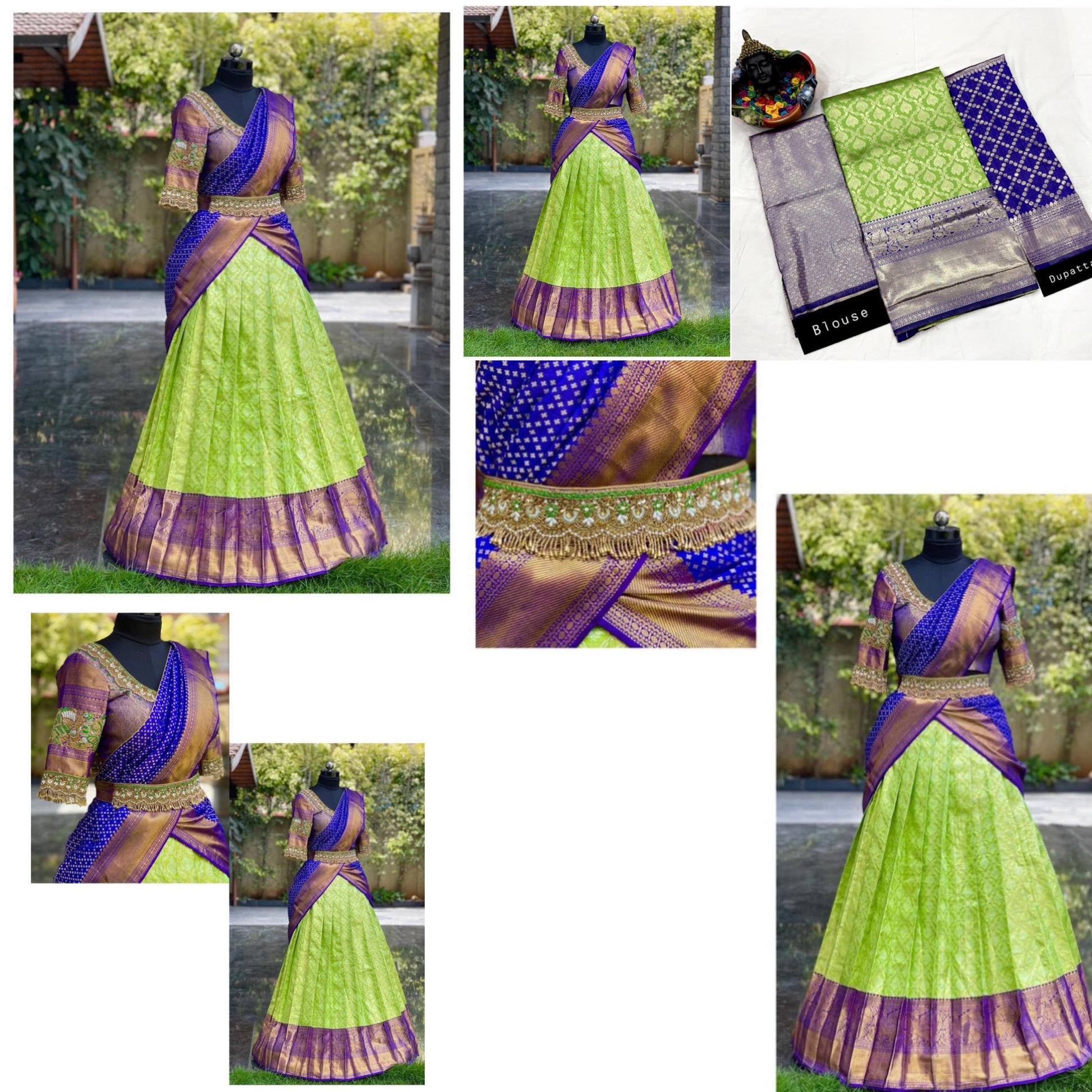 Function Wear Green Color Kanjivaram Silk Half Lehenga Saree