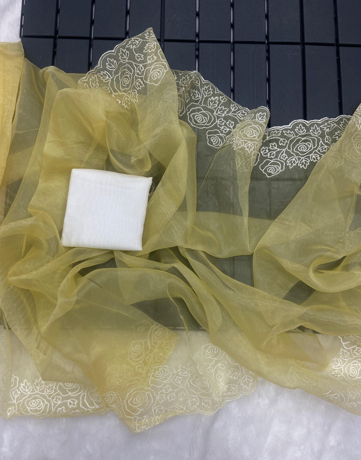 Stay beautiful with our new organza collection with beautiful white thread embroidery work border