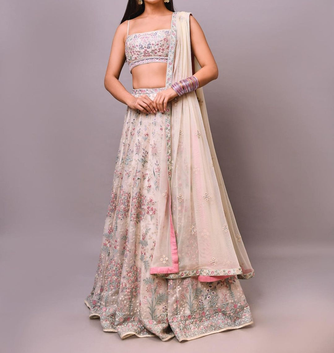 Phenomenal White Color Function Wear Georgette Diamond Work Lehenga Choli