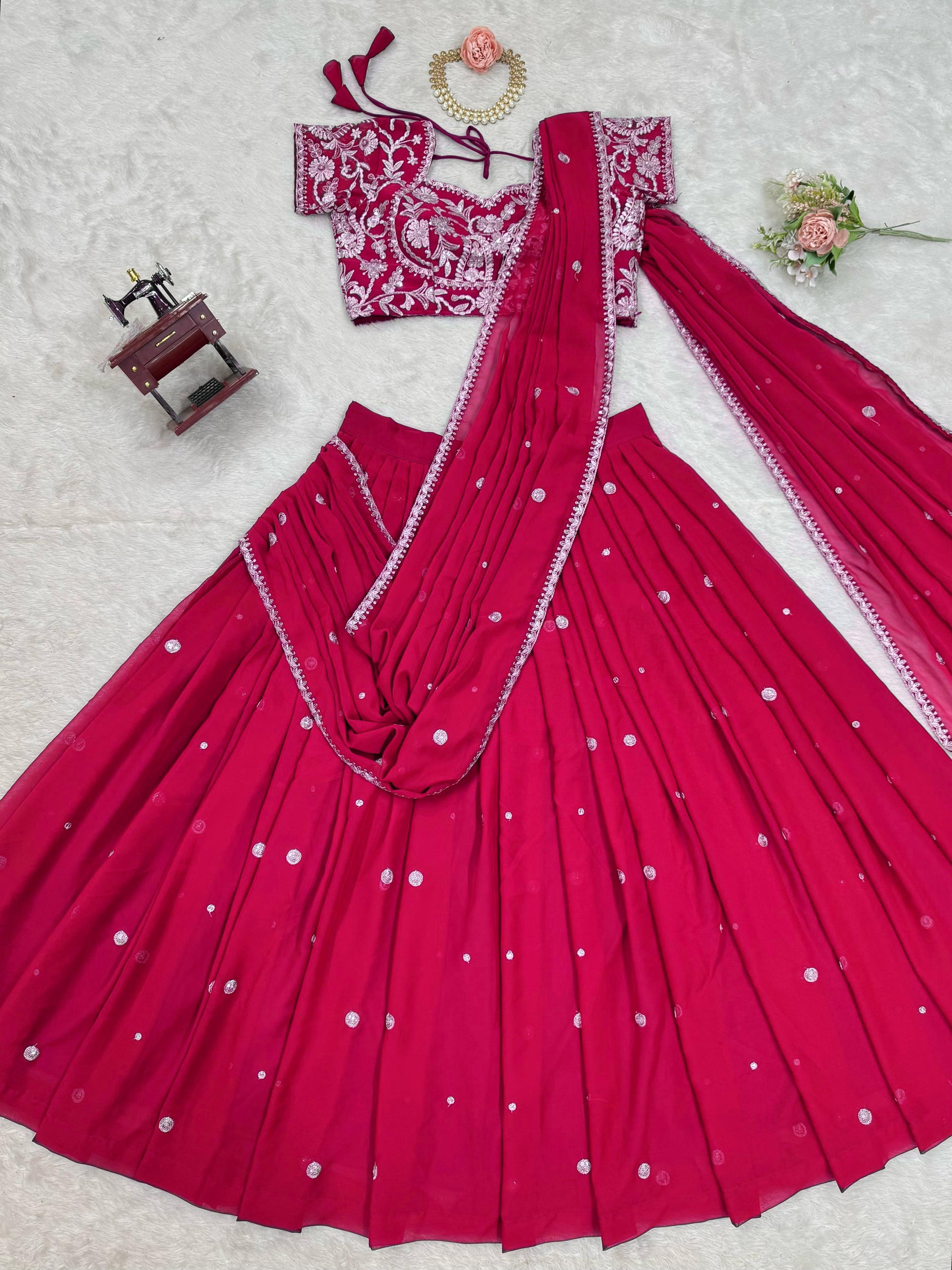 Pink Color 1 Min Ready to Wear Ruffle Style Georgette Lehenga Saree ⭐⭐⭐⭐⭐(4.9/5)