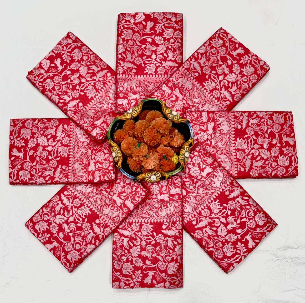 Red Soft Lichi Silk Jacquard Weaving Designer Saree