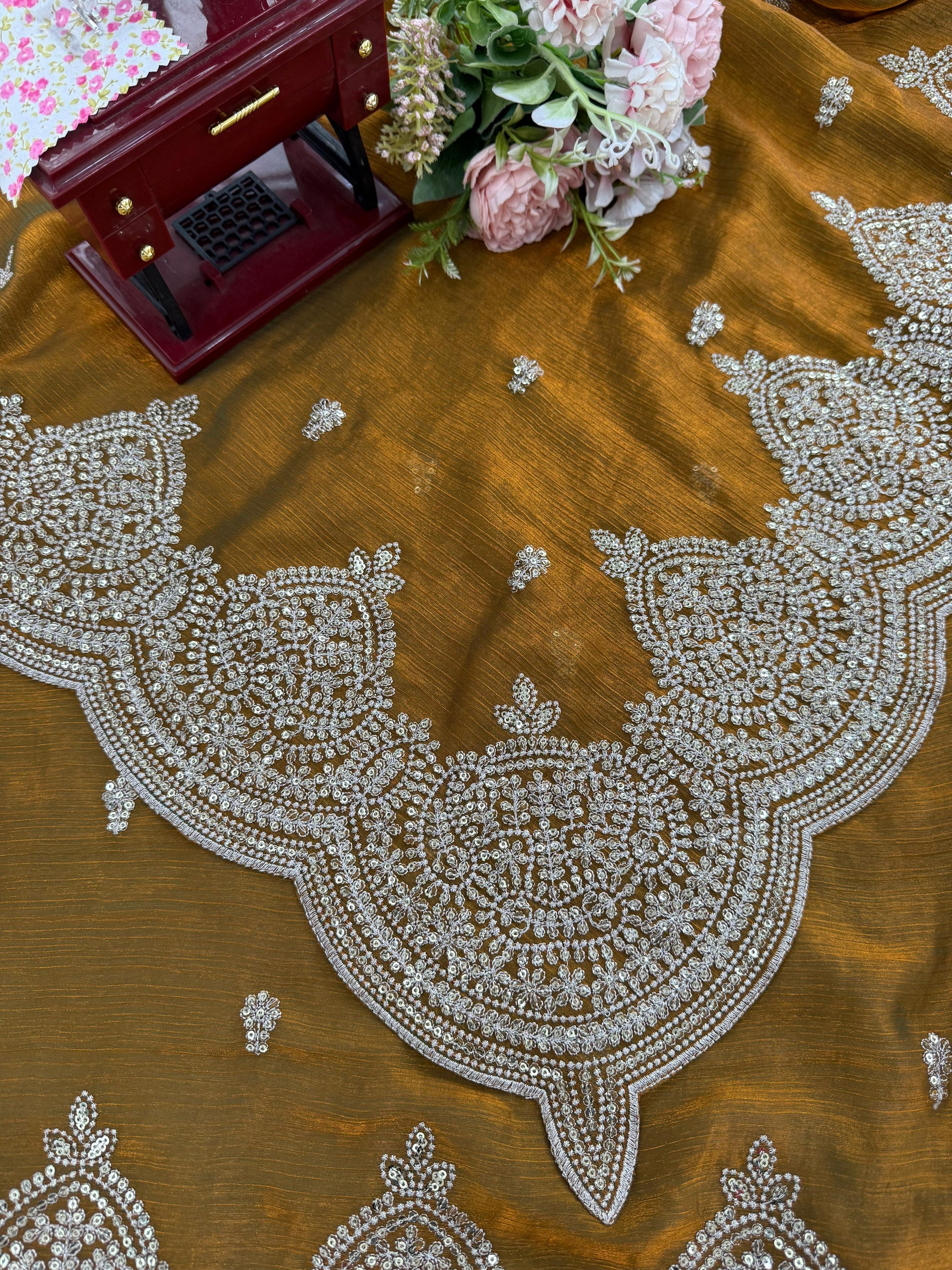 Fendi Chiffon Saree With Thread Work And Matching Embroidered Blouse