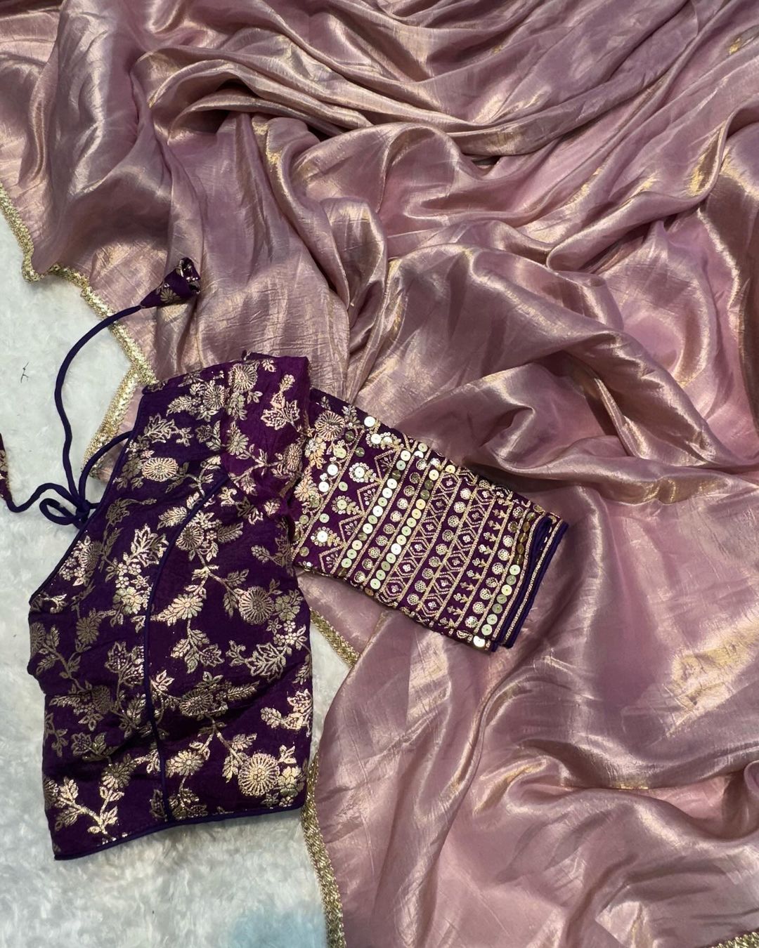 Saree Fabric. :-Crush Tissue Silk Gold True tone zari color
