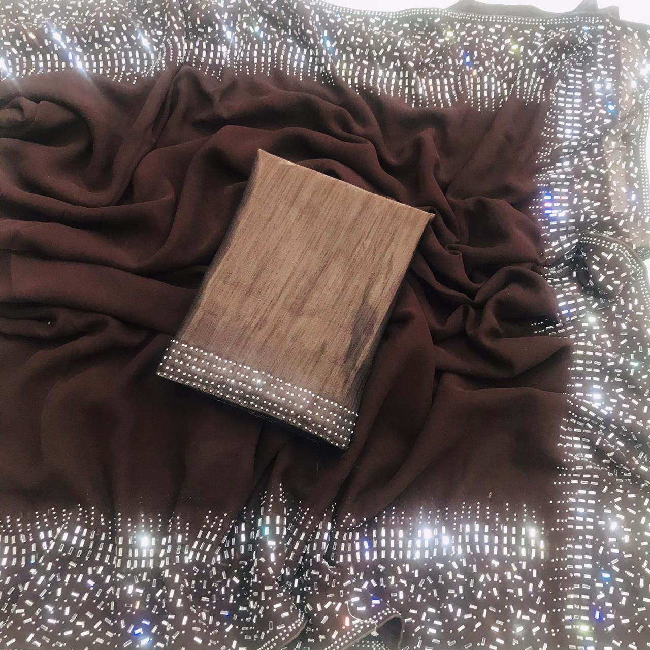 Wedding Wear Coffee Color Georgette Fix Stone Work Saree Blouse