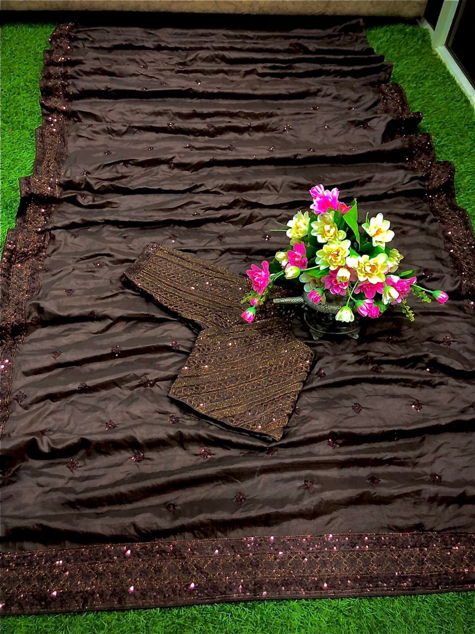Wondrous Brown Color Wedding Wear Dola Silk Sequence Thread Work Saree Blouse