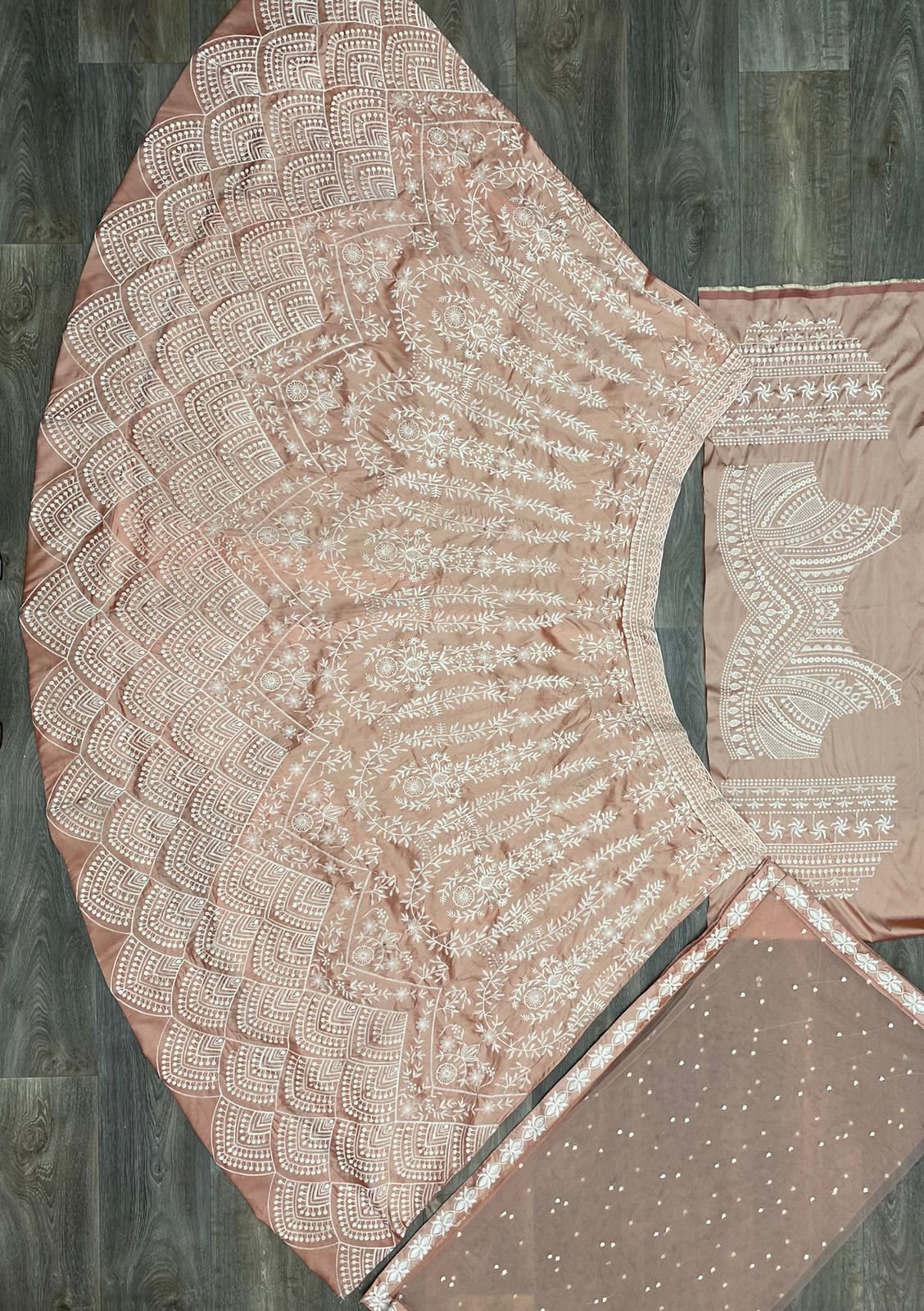 Wondrous Off White Color Wedding Wear Embroidered Work Silk Lehenga Choli
